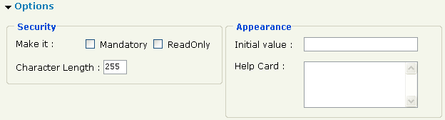 Administrator can click on the "Options" link within the field selection window and configure the Security and Appearance of the field.