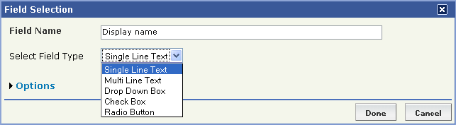 Drop-Down Box (Field type is suitable, when an end user has to select from the available options.)