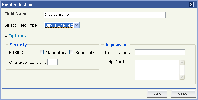 To set Security, check against "Mandatory" or "Read only".